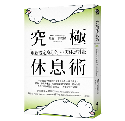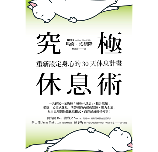 這是一本能讓忙碌現代人學會如何「積極休息」和「睡眠」的好書,它能協助你獲得良好的「心理」、「社交」、「靈性」及「身體」休息。