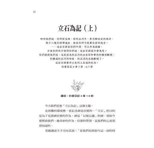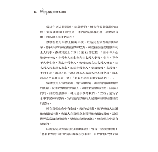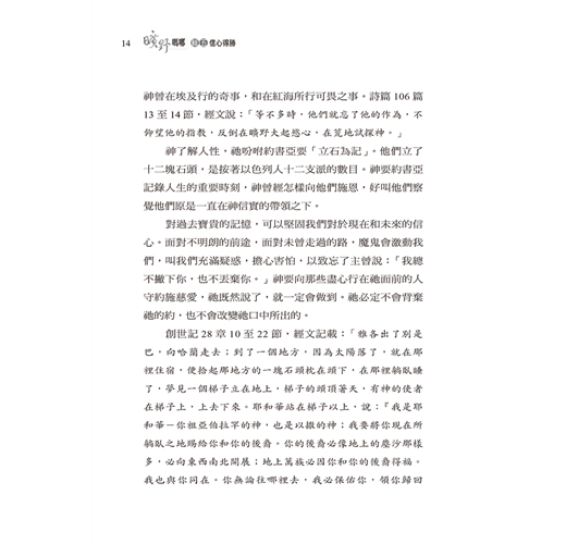 廣播節目《曠野嗎哪》的講章能集結成書,是神奇妙的帶領。這些逐字稿原本是因應大陸聽眾要求,即一群熱心聽友每天聽打當日播出的靈修節目內容,在 QQ 群裡分享。因為資源缺乏的緣故,他們非常珍愛這些靈糧(想像他們聽一下,暫停,打一句,沒聽清楚再倒回去重聽的辛苦)。可惜因為聽打的關係,難免有疏誤之處,但這卻促使我們嘗試把每天的講章,全文上載於良...