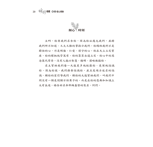 本書是著重神話語的靈修材料,單單渴慕神,誠實地於聖經經文中收取每日的靈糧嗎哪。輯一至輯八收錄2018年的節目信息,梳理文字,分編成八輯,每輯各有一個主要課題:「與主同行」、「突破更新」、「試煉成金」、「謙卑倚靠」、「信心得勝」、「靈性成熟」、「禱告大能」、「忠心服事」。藉著思想、感恩、禱告,領人一步一步認識主,進深人與神之間愛的關係,直到永生。