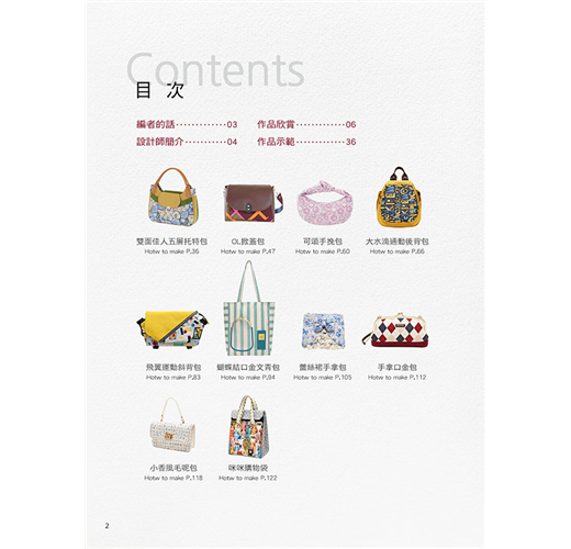 《達人包!你一定會》共收錄10款包,不同尺寸、配布變化共36個包,是布作達人們針對不同族群、用途而設計,有粉領族的斜背包、文青托特包、休閒運動包手拿包、通勤後背包、小廢包,手挽包和購物包,每個包包均有全圖解示範以及不重疊原寸大紙型,只要跟著達人教學一步一步來,就可以輕鬆完成!