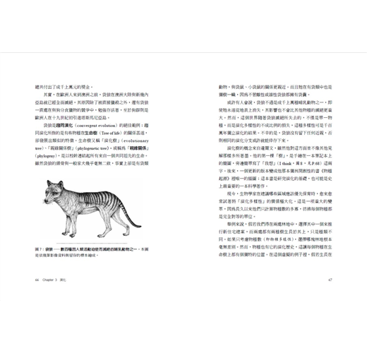 袋狼是趨同演化(convergent evolution)的絕佳範例;趨同演化所指的是有些物種在生命樹(Tree of life)的關係甚遠,卻發展出類似屬性的作用。生命樹又稱「演化樹」、「親緣關係樹」(phylogenetic tree),或稱為「親緣關係」(phylogeny),是以枝幹連結起所有來自一個共同祖先的生命。雖然袋狼的頭骨與一般家犬幾乎毫無二致,事實上卻是有袋類動物,與袋鼠、小袋鼠的關係更親近。而且牠在有袋類中也是獨樹一幟,因為不管雌性或雄性袋狼都擁有袋囊。