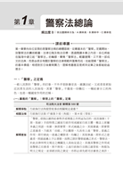 許多人面對法條,常有感到不知從何讀起的無助感,花了很多時間背誦記憶,但實際看到題目時,卻又不知如何運用或者是容易忘記,因此得出法規很難記憶的結論。本書編寫有鑑於這些困難點,將所以的警察法規,以精要的內容重點整理,搭配圖表的傳達方式讓你快速掌握重點!另外,重點後有牛刀小試、章後還有相關的試題演練,可以讓你隨時檢視學習成果。