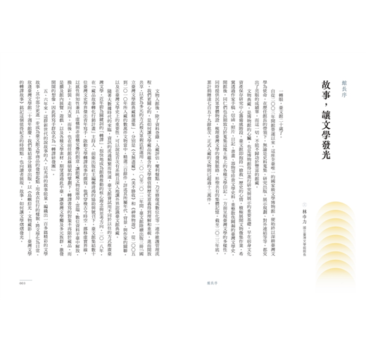 本書共精選35件館藏文物,以33篇文學轉譯故事搭配百張圖片,分別從「手稿篇」、「書籍篇」、「報刊篇」、「寫真篇」與「器物篇」切入,將透過生動的敘事,娓娓道出每件藏品背後不為人知的精彩故事。