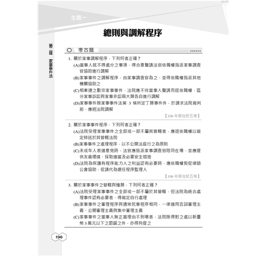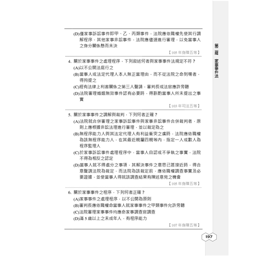本書以民事訴訟法、刑事訴訟法及家事事件法的常考重點為基礎,並依照各法規主題分門別類,精選大量考古題提供考生演練,試題後面均附詳解,並收錄民事、刑事訴訟法及家事事件法最新公布之修訂條文,新舊條文對照,修法重點一目了然,讓考生輕鬆握命題趨勢。