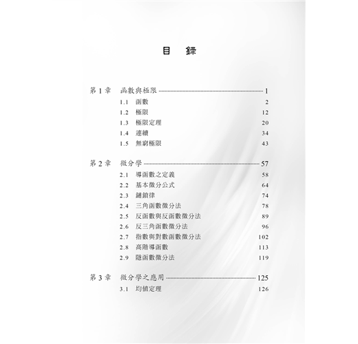 為使讀者免除初學微積分的心理障礙,本書在內容上沒有繁瑣的計算與艱澀難懂的理論,配合圖表敘述的輔助說明使讀者能輕易掌握微積分的學習要領,打破微積分艱澀難學的心理迷思,是初學微積分者的最佳入門書籍,同時亦適用於課堂教學使用。