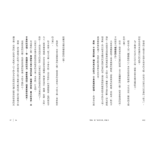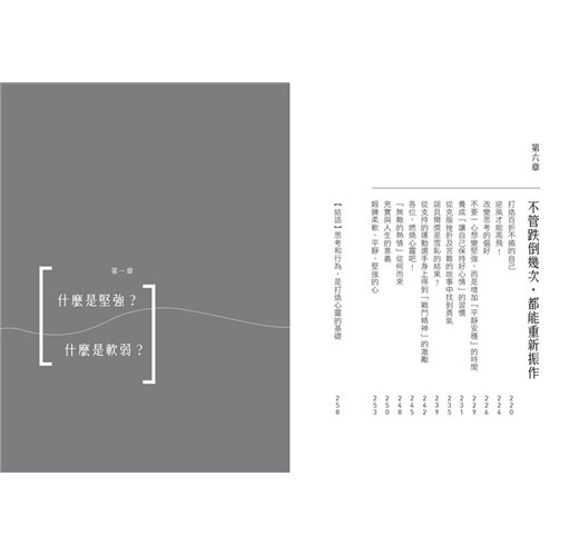 感到壓力、害怕犯錯、遇到水逆和發生黑歷史──身而為人,這是一生都要面對的課題。「堅強」並不是讓自己完美、無懈可惜,而是要如何接受失敗、負面的事件,並有快速修正的能力,也就是具備受挫的勇氣、重來一次的心理素質。