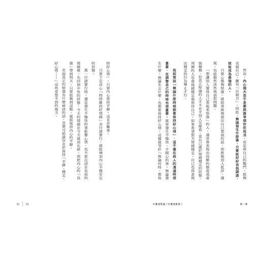 軟弱是「無法控制情感的波動」,試著從改變行動開始,改變思考的習慣,調整自己的狀態,讓身心維持穩定平靜。