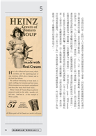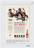 不過,上述的番茄醬(即番茄糊、番茄泥)與我們現今熟知吃麥當勞薯條所沾的番茄醬(ketchup)可說是兩回事。江湖上有一派說法認為,ketchup源自於廣東話的茄汁(ke-jiap)或閩南語講的魚露(kê-tsiap),不管他是廣東還是福建,我們只知道現今流行的番茄醬味道與配方為一九○六年由美國的亨氏食品(Heinz)確立。亨氏的產品集中於各類調味料與醬料,當時創辦人Henry John Heinz曾盤點自家品項,發現共有五十七種,因此亨氏後來的廣告與產品設計都喜歡拿「五十七種變化」(57 varieties)當作賣點。而其於一九一○年的番茄醬廣告上,甚至特別強調不含防腐劑苯甲酸鈉與其他藥物(Free from Benzoate of Soda or other drugs)。