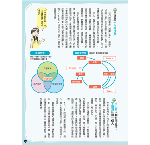 ◆以情境式漫畫深入淺出講解如何建構循環型社會以及里山生活運用,我們必須透過自身思考與付諸行動來推動綠色復甦,才能實現永續社會,守護地球。