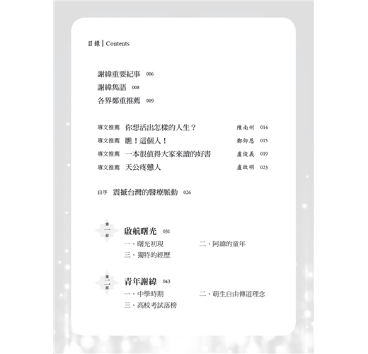 作者以他親身的經歷來記述這位「台灣史懷哲」的故事,讓讀者細細品味謝緯的一生。