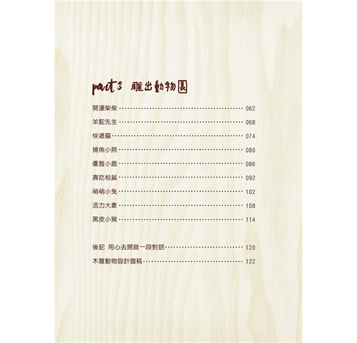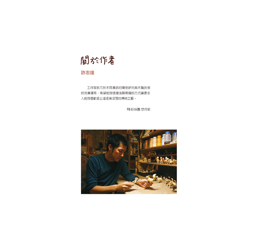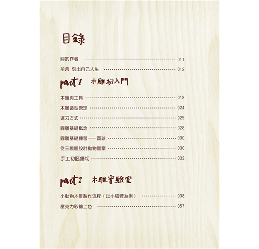 相關著作:《一把美工刀削出可愛小動物:我的第一本木雕手作書【暢銷修訂版】》《想了就能作!療癒木雕研究室:從設計到實作,不插電雕刻技法完全拆解》