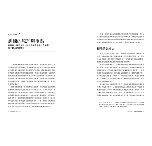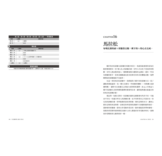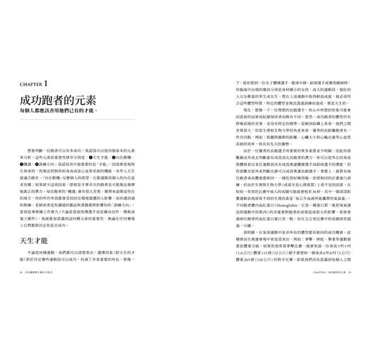 ◆成為一個成功跑者的四大要素,以及丹尼爾斯教練獨門的十二點跑步訓練基本原則,幫助你評估訓練成效、提高訓練品質。