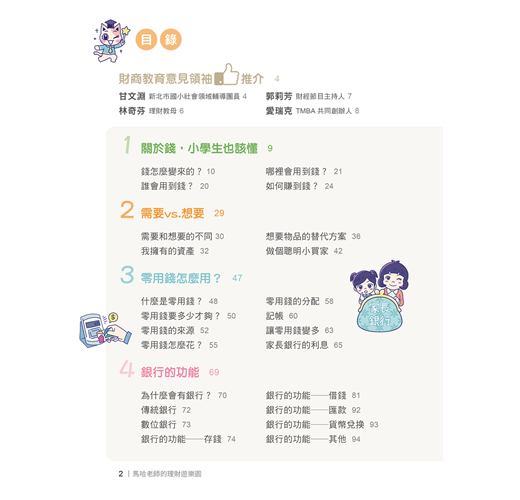 欣聞馬哈老師即將出版《馬哈老師理財遊樂園》一書,除了結合教育部 108 課綱「財金素養」,也把其他國家的財商教育內容納入,融合歸納出適合台灣小朋友的財商知識。這本書適合親子共讀,因為它解決了許多父母的焦慮:「怎麼辦?我自己也不會理財,怎麼教小孩理財?」「小孩財商教育該怎麼起步?」