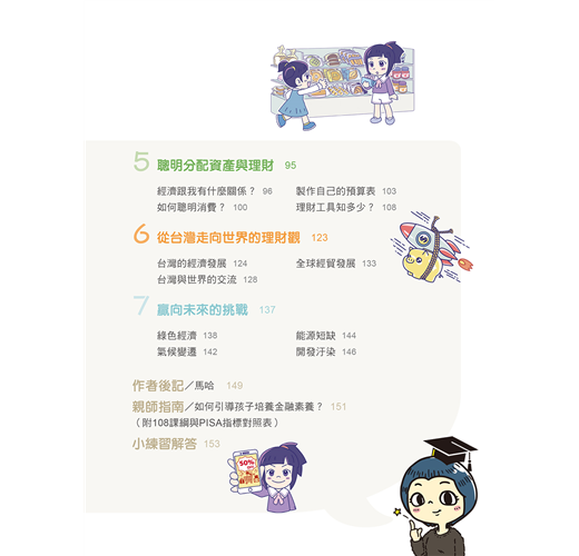身為地球村的一員,我們的孩子也要贏在起跑點,這本《馬哈老師的理財遊樂園》,結合了教育部108 課綱「財金素養」,並交叉比對世界各國財商教育內容,就是希望從小扎根我們下一代的財金素養,並且與世界金融素養接軌。