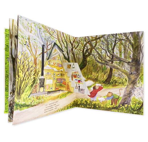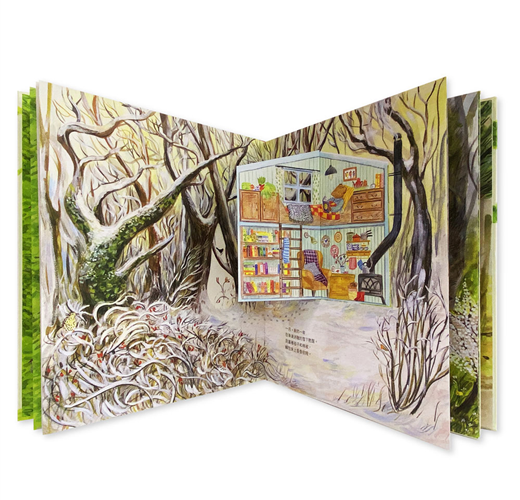 ․每個跨頁都設計了小翻頁,可以探訪動物小屋,發現屋內陳設的小驚喜。