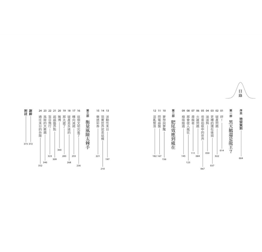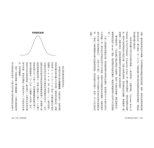 1. 未來是由具有影響力的重大事件主導,就算這些重大事件可以預測,也很難預測得到,這種極端事件比大家以為的更具破壞性。