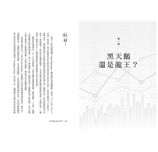 納西姆.尼可拉斯.塔雷伯靠著《黑天鵝效應》聲名大噪,然而,不僅不是紙上談兵的學者,還是優秀的交易員,把黑天鵝不可預知的特性,運用在投資上,為自己帶來豐碩的獲利。作者史考特‧派特森(Scott Patterson)以塔雷伯為主角,深入探究億萬交易員和高風險危機預測師的世界,揭露他們如何憑藉極端事件,賺進巨大的財富。