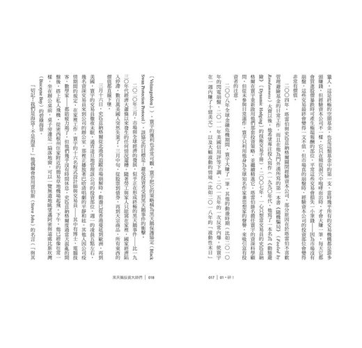 我們的世界無疑變得更極端了,疫情、氣候變遷、大國對立、網路攻擊、政治激化——放眼望去,幾乎處處都有混亂迫近,脅迫著數以兆計的資產,但,市場哀鴻遍野之時,為何卻有一批人大賺其錢?是危機預測奏效,還是背後有什麼獨門的交易策略?作者獨家採訪寰宇(Universa)策略小組,同時梳理整個華爾街局勢,尋找擁有類似操作模式的市場參與者。他也拜訪從地震預測、反恐到氣候學等各個領域富有真知灼見的觀察家,了解是否真有可能押注在災難上並賭贏。