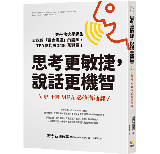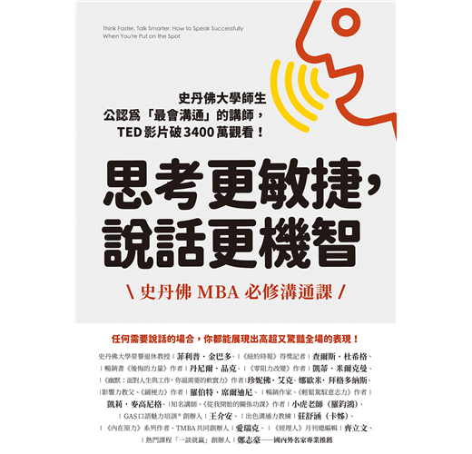 「如果你想增進即興談話的技能,《思考更敏捷,說話更機智》就是你必讀的書。這本書以嚴謹的研究為基礎,再加上作者在史丹佛商學院教授溝通技巧的多年經驗,你將從中得到許多有用的建議。」