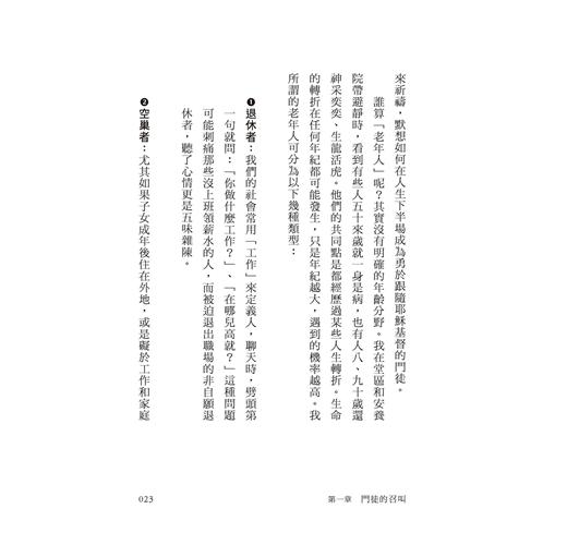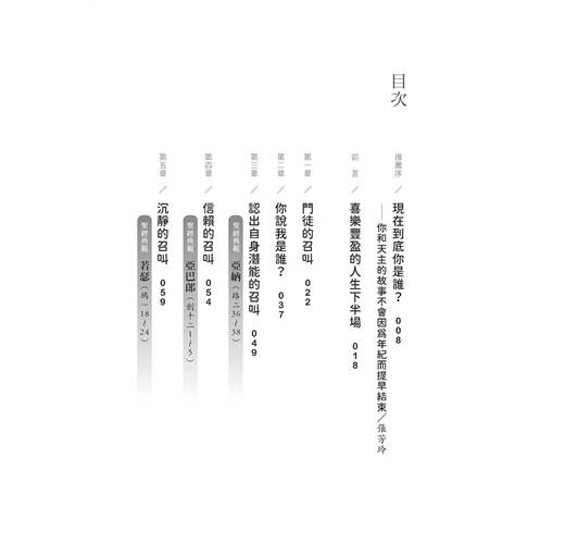 以睿智獨到的眼光闡述他們在晚年獲得哪些聖召與使命,