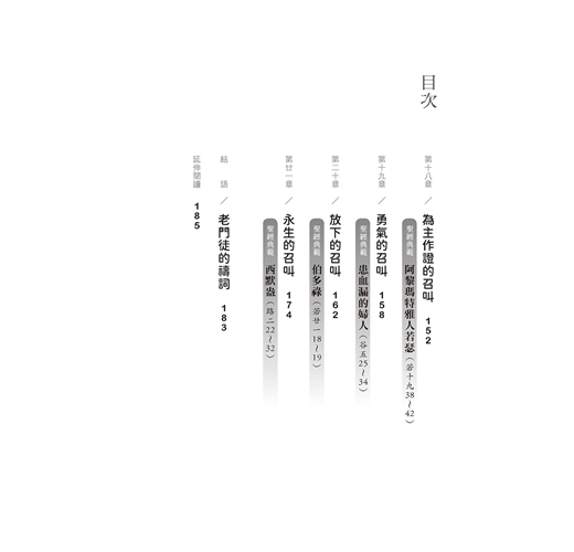 ◆ 每章都有「省思與祈禱」,幫助讀者深入探究聖經深意,也分辨天主的旨意。