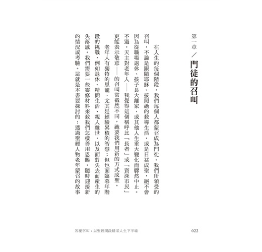 ◆ 寫給熟齡族的讀經祈禱材料,筆觸溫潤有深度,有助於省思老年的意義與價值,探索人生重要課題和信仰抉擇,積極迎向老後退休生活。