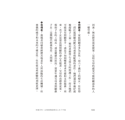 例如退休、精簡生活、親人離世、衰老失落等境況。