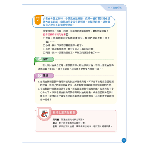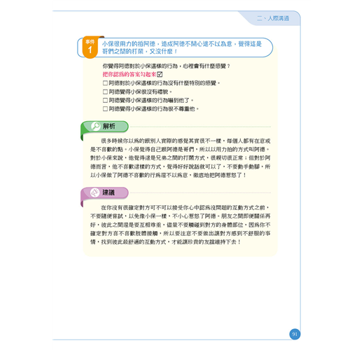 ● 家長也可以和孩子共讀,或由孩子自行閱讀後以自身的情形與老師或家人進行討論。