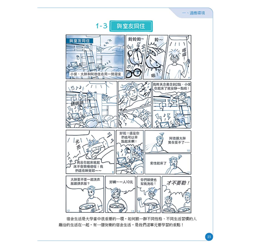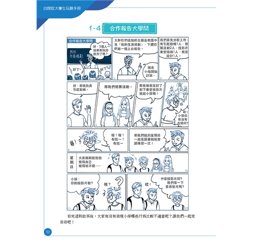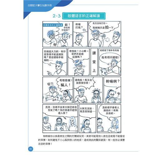 透過漫畫情節、主題大綱的說明、大學生活常見情境,