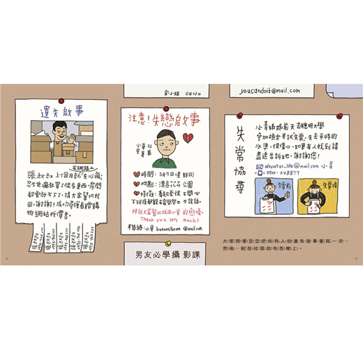 「遺失啟事,真的可以幫人找回東西嗎?」答案雖不確定,但透過孩子練習怎麼寫遺失啟事,無疑給了一個最佳示範。一張張遺失啟事,在多元形式的書寫下,表現出孩子多管閒事的善意,也傳達了說話和表達關心的技巧,更在好心人的幫忙下,拉近現代人原本冷漠疏離的距離。當生活中不免又弄丟東西,這個輕鬆兼具語文趣味的《遺失啟事》,不只幫你我找回遺失物,也找回遺失許久對人際和生活的熱情。