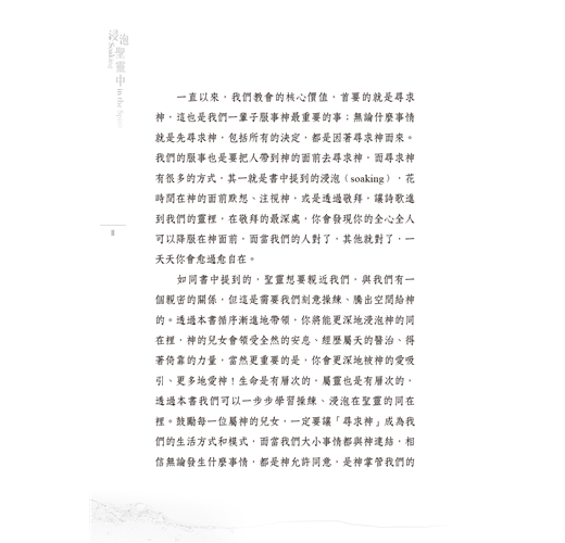 ★教導你在忙碌、追求立即成效的世代中,練習停下來浸泡在神的同在中。