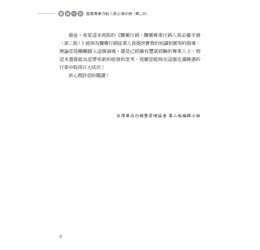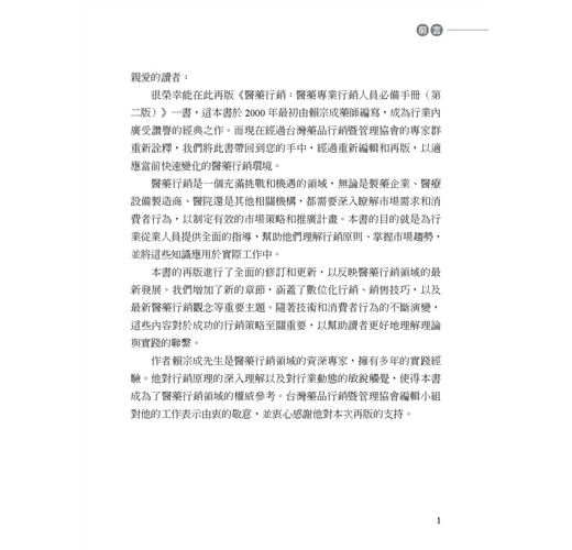 這本再版的《醫藥行銷》相信能夠為醫藥行銷從業人員提供寶貴的知識和實用的指導。無論您是剛剛踏入這個領域,還是已經擁有豐富經驗的專業人士,相信本書都能為您帶來新的啟發和思考。