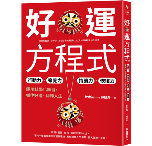 人生就是一場運氣遊戲,如何在這場遊戲裡順利過關斬將?鈴木祐歸結出好運方程式:幸運 =(行動×多樣+察覺)×恢復