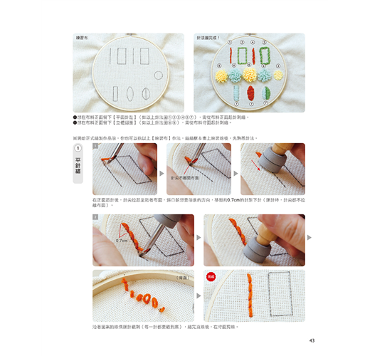 收錄17種刺繡針法+5種手縫針法,15件美麗的設計作品,並輔以豐富詳細的步驟圖解,跟著書中圖文一步一繡,更加清楚易懂。