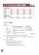 聽力測驗:共30題,測驗內容包括「看圖辨義」、「問答」、「簡短對話」及「短文聽解」,總分為120分。