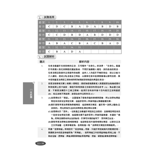 第三部分歷屆試題詳解,收錄109-112年農田水利新進人員、台灣電力公司、台灣自來水公司與經濟部所屬事業機構試題,共10份,100%題題詳解。讀者可透過演練各類考試的考古題來檢驗自身實力,不明白處可研讀解析進行強化,熟能生巧,當練習到對題目有題感時,代表對法條的直覺越來越精準,即便非法律相關科系畢業,也能輕鬆自學應試。