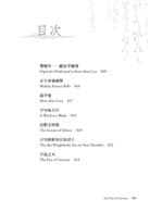 這是一部不可思議的魔幻詩集,作者擅長以意象塑造遼闊的詩境,其詩文讀來彷彿跳躍於不同的時空,字句間處處流露對宇宙奧祕的追求與探索精神,她把握物象間的異同,塑造出奇幻而自由的想像世界:跳躍的文字、高唱聖歌的神聖天使、行於天際的月亮騎士等,伴隨無所不在的以太和致幻的苦艾草之香,暢遊在奇妙的天地之間。
