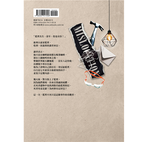 讀過藍霄推理小說的讀者就知道,當秦博士出現,做了一些訪談與調查後,這時,先把書閤上,回想一下秦博士說了什麼,謎底就悄悄接近了。