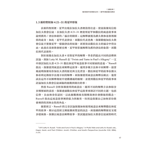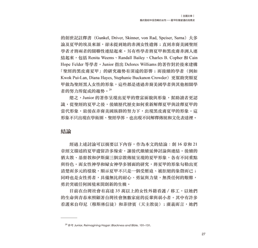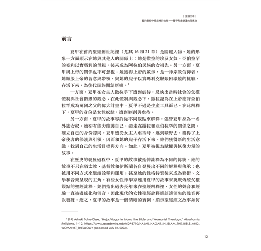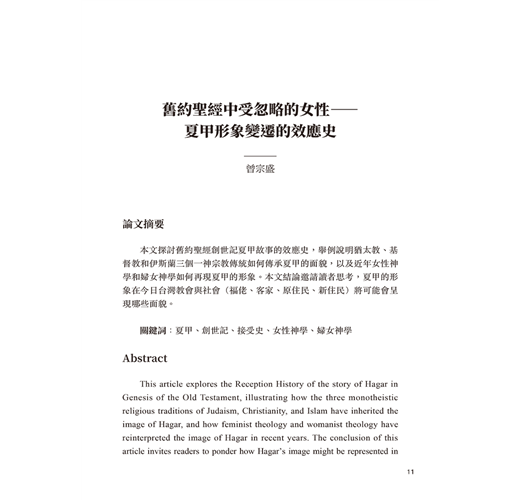 11 舊約聖經中受忽略的女性—夏甲形象變遷的效應史/曾宗盛