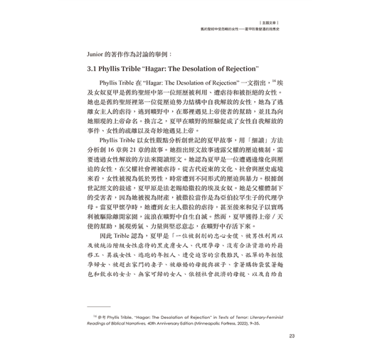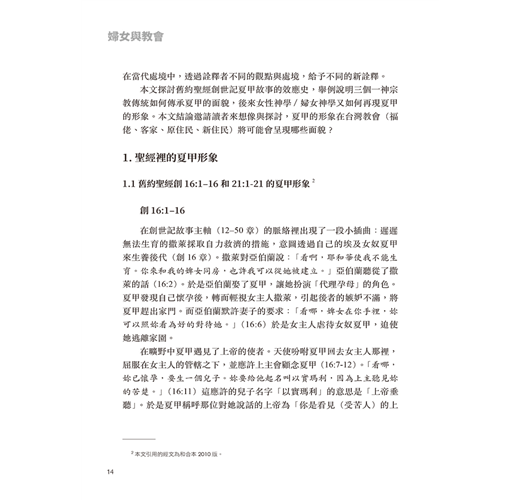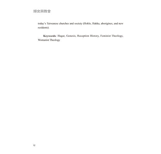 關鍵詞:夏甲、創世記、接受史、女性神學、婦女神學