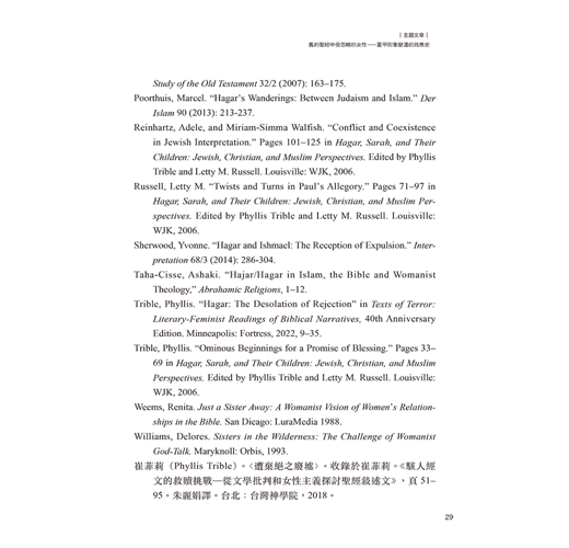 193 舊約聖經中受忽略的女性:夏甲形象變遷的效應史/何世莉