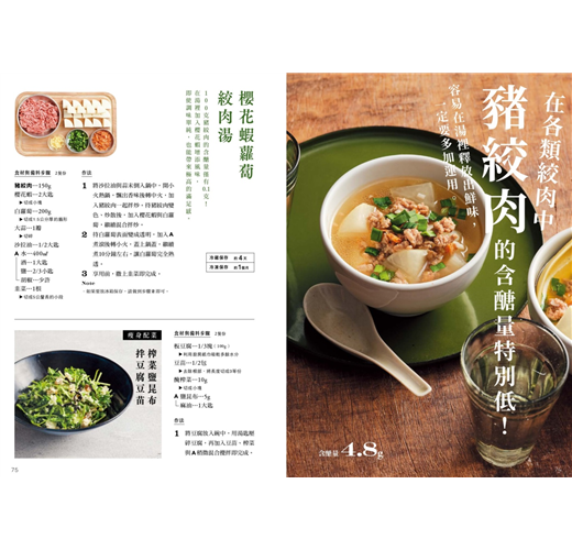 ★ 每道食譜皆標示出料理的熱量及含醣量,適合想減脂的你!