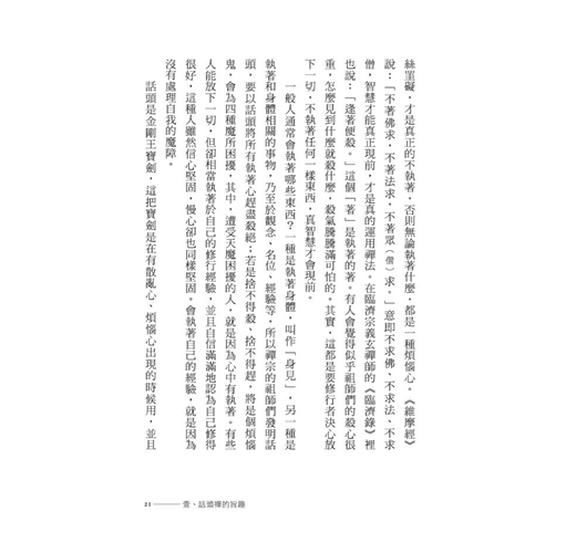 這把參禪的形形色色,優優劣劣,毫無保留地一一揭開,這是禪師何等地苦口婆心啊!而師父的講要,除了白話解釋,更整理出其中的要點,加以分析,讓讀者能讀得更深,把握得更好,對本身在參禪的工夫上,能行持得更好。