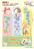 此外,除了《魔法成語簿》,還配合書中的主題,另外搭贈了兩樣贈品:《人物貼紙》與趣味DIY小文具《標語書卡》,希望小讀者在閱讀跟學習之外,能從中獲得更多樂趣。
