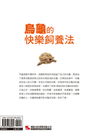 本書除了針對4種族群的烏龜有詳細的介紹,在飼養環境、每日照顧、食餌選擇、休眠繁殖、健康管理上也有淺顯易懂的解說。