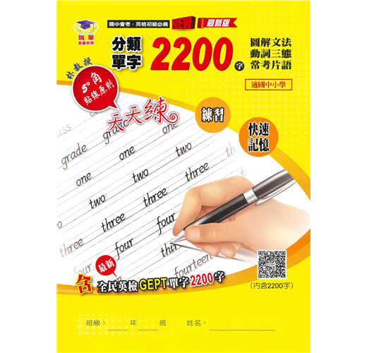 (一) 拼寫分類單字。初級英檢,中學必備主題分類2200字,易學、易背。(包含常考片語、全部單字聽寫QR Code)