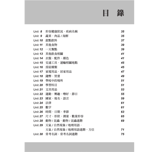 ◆ 最新版分類單字依照英檢中心提供之2200字初級單字表,整理出50種主題分類,易學、易背。