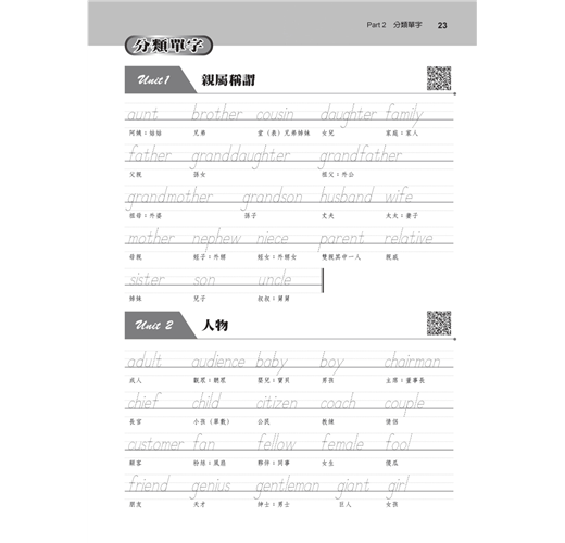 ◆ 隨字/句附上美音QR Code,一面聽一面寫,最佳複習範本。
