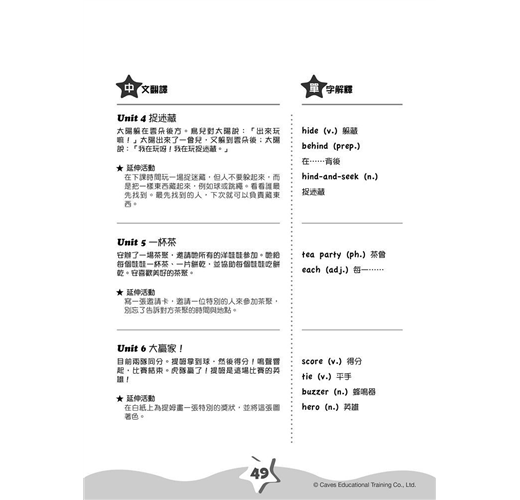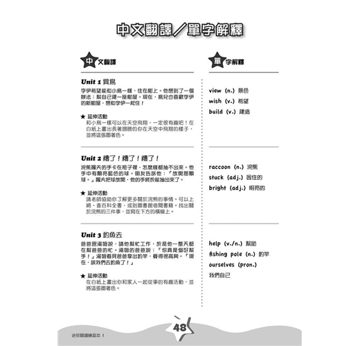 4. 書末附有中文翻譯與測驗解答,無論老師或家長都能輕鬆使用。