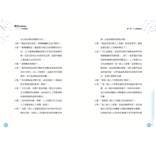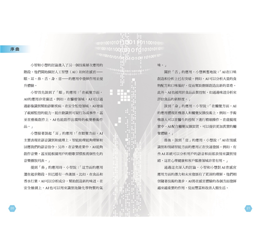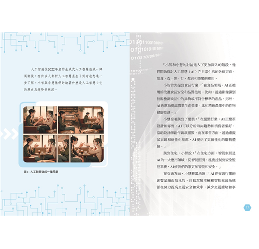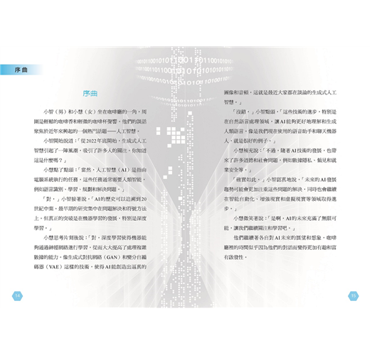 這本書不僅內容豐富,表達方式生動,還充滿了各種生活與工作上的實例應用。例如,書中的虛擬人物小智和小慧透過對話,引導讀者解決心中的疑惑,提供生活化的解答方式。全書分為人工智慧發展與實務應用、人工智慧求生筆記兩篇,涵蓋了企業與個人面對AI發展的實例與學理介紹,絕對是一本兼顧實務應用與理論思考的好書。